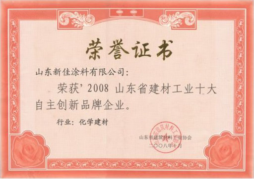 2008年山東省建材工業十大自主創新品牌企業