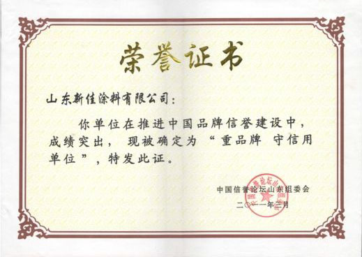 新佳涂料榮獲“重品牌 可信單位”稱號