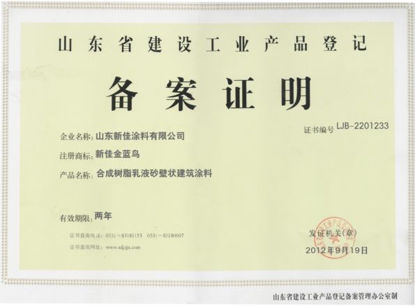 山東省建設工業品備案證 內墻系列